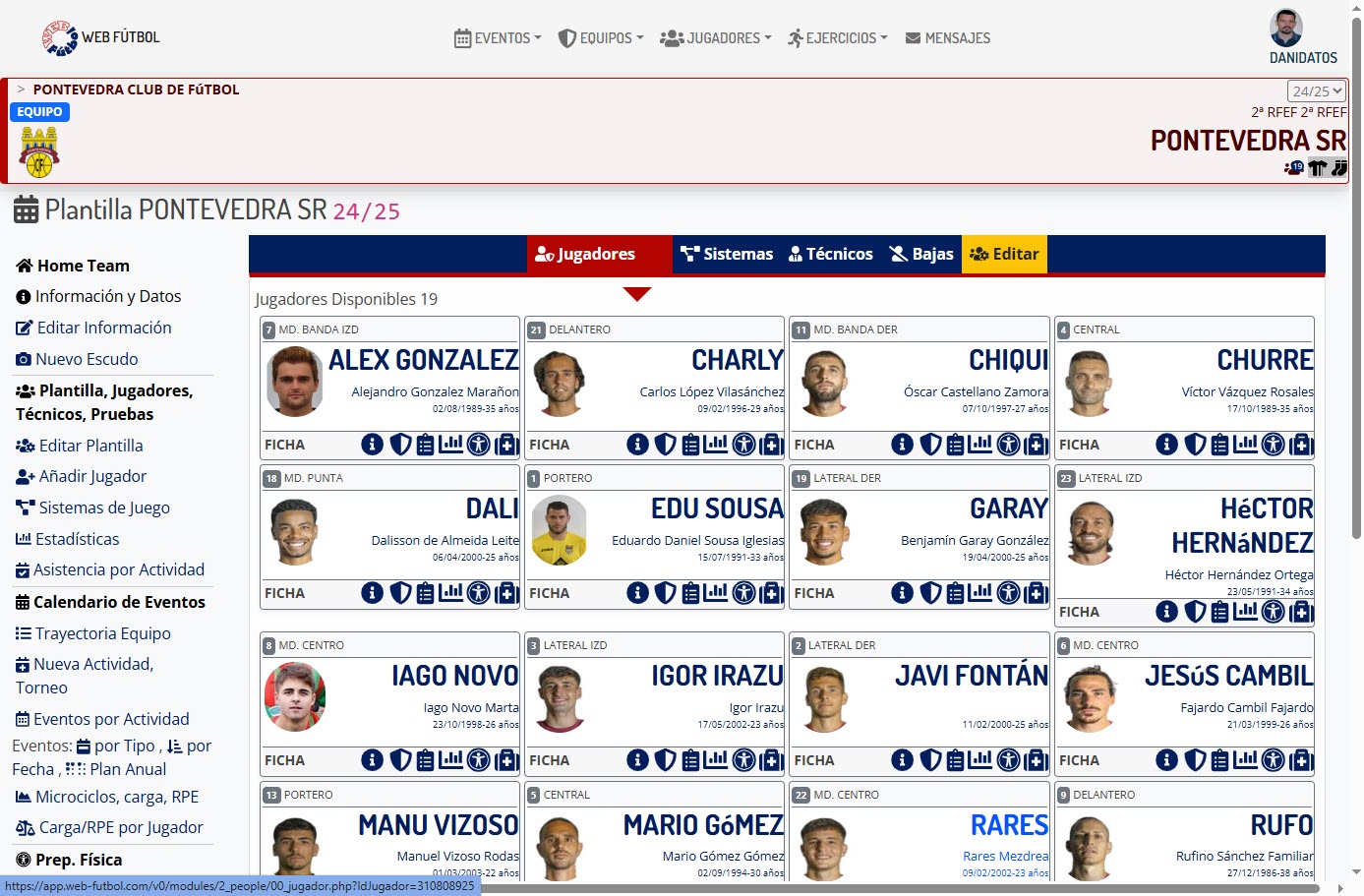 Porque durante 25 años, he programado, diseñado y actualizado una base de datos, que comenzó siendo tablas de Excell, evolucionó y creció con Access y ahora es una Aplicación Web, programada en PHP, Javascript y HTML, con acceso de usuarios por roles y cientos de posibilidades de uso para el entrenador, para el club, para los jugadores, directivos y coordinadores.